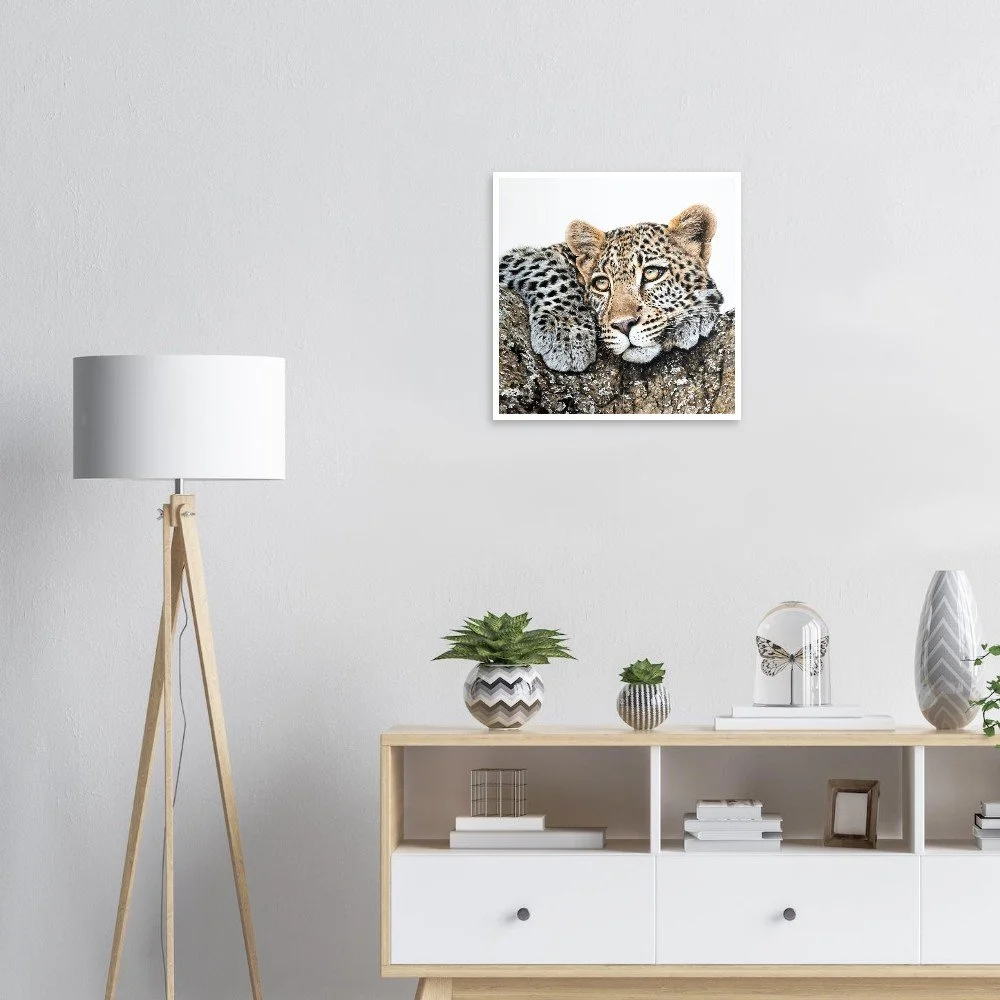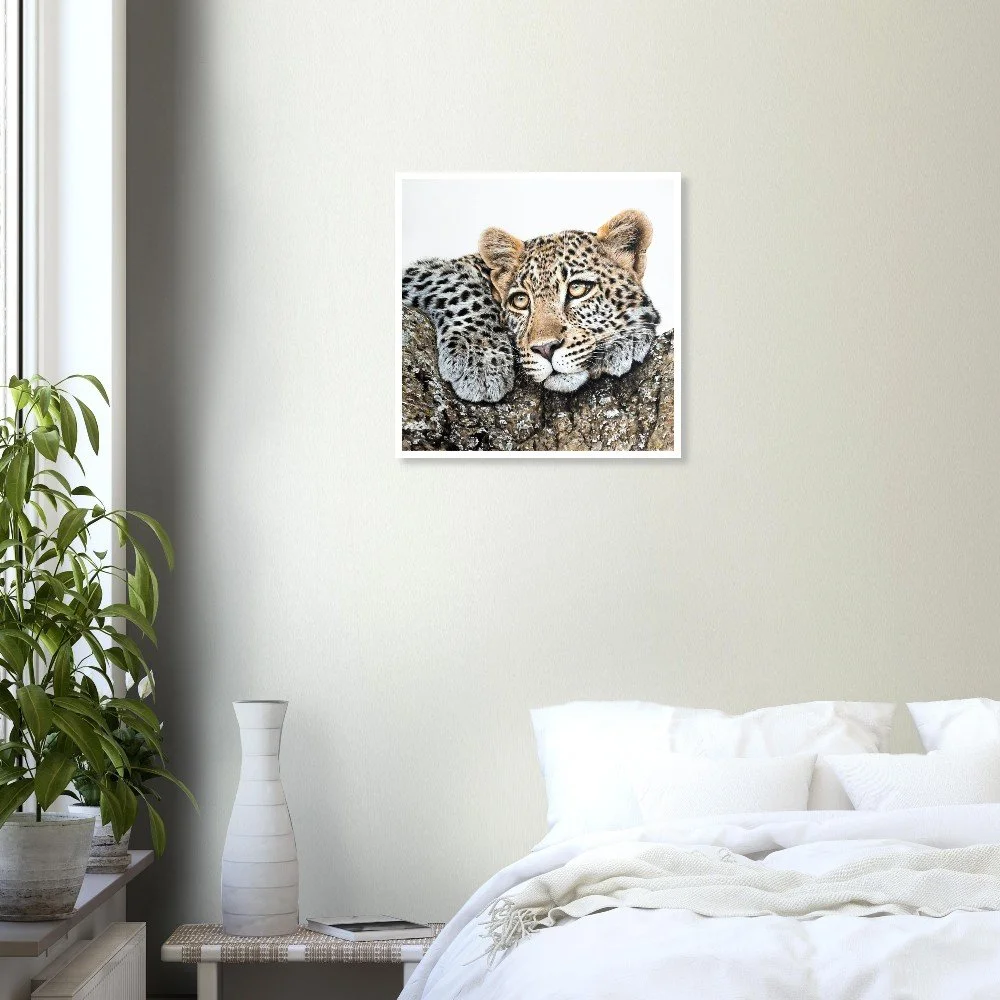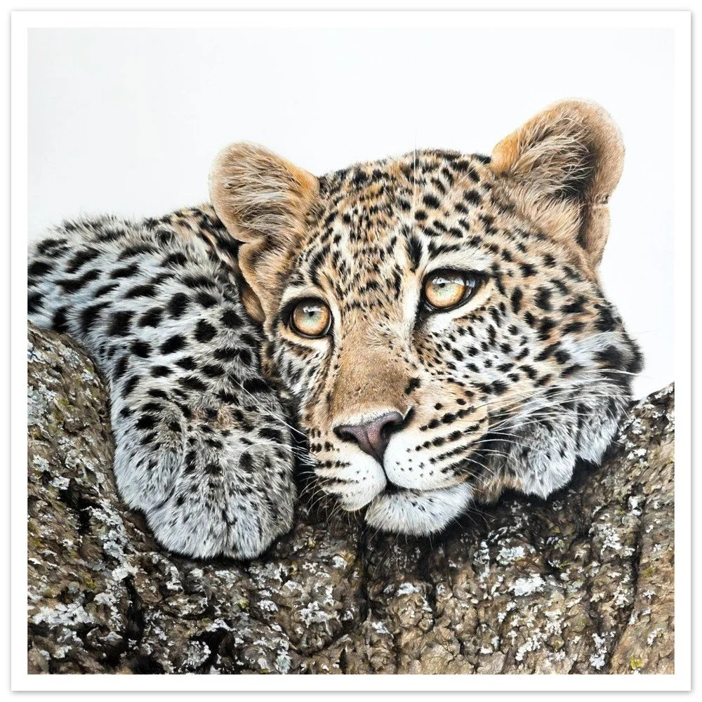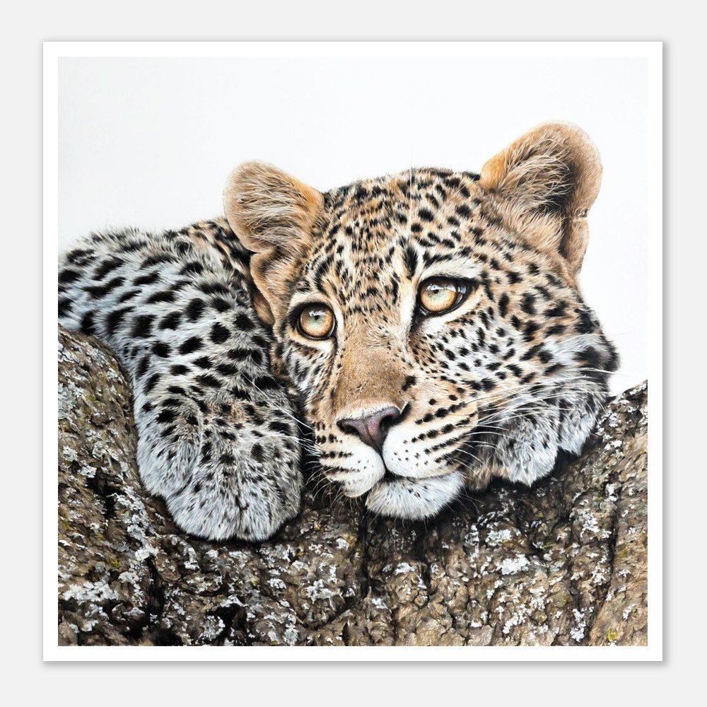 This is a print of one my original wildlife drawing named "Lookout". Illustrating a peaceful and cerine moment for this leopard, observing the world from up-high in the branches of the trees.