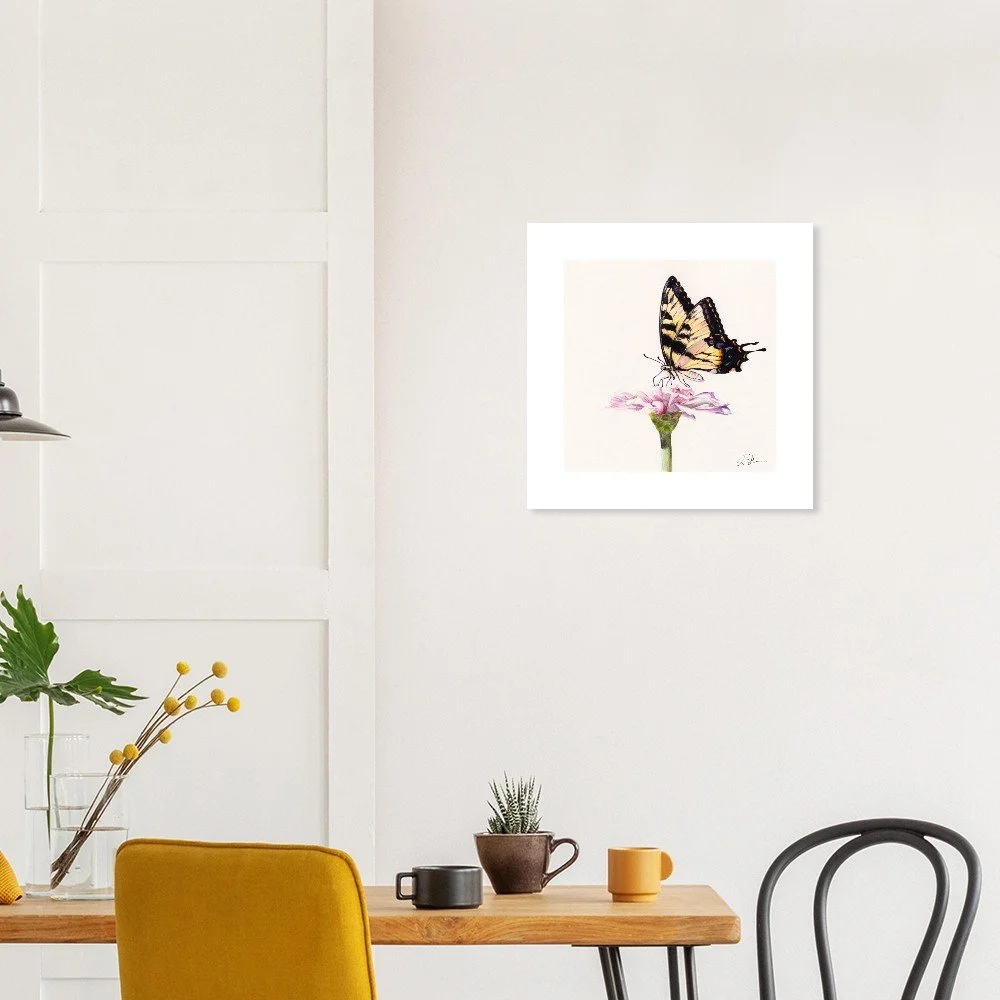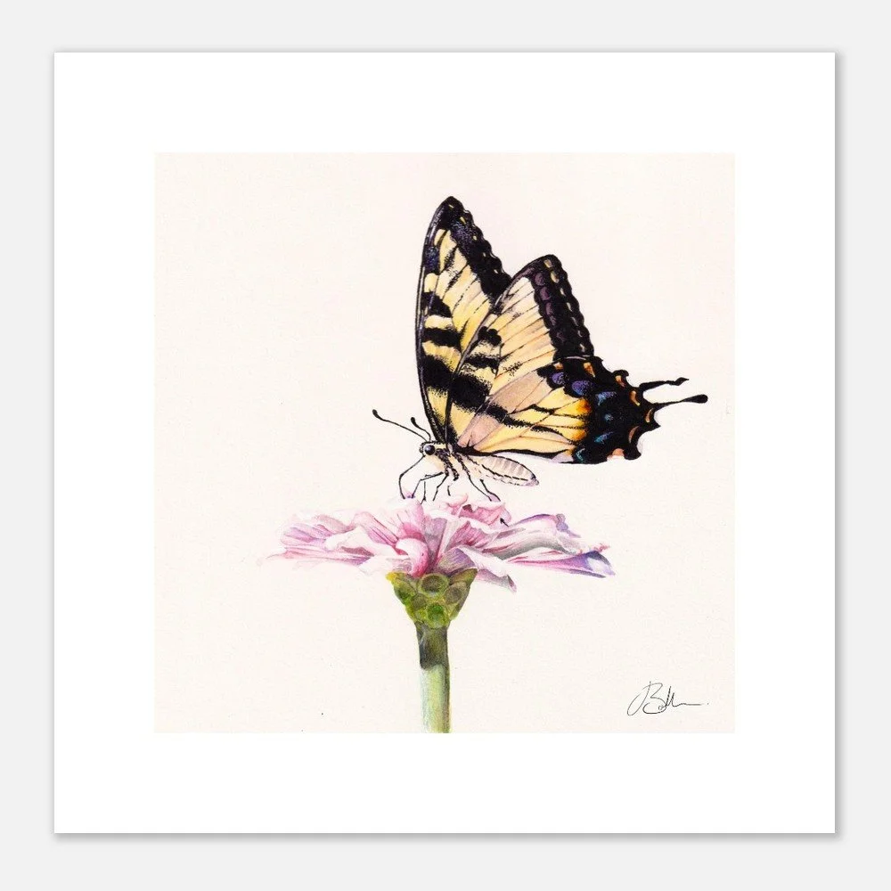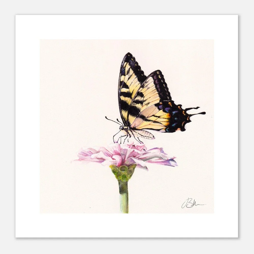 This is a print of one my original wildlife drawing named "Swallowtail". Illustrating a Butterfly delicately positioned upon an bright flower.